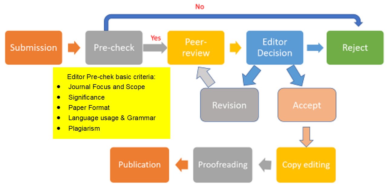 Al-Amru: Jurnal Komunikasi dan Dakwah Islam is a single-blind peer reviewed journal. This is a assessment with at least two independent reviewers, followed by a final acceptance/rejection decision by Journal Editor. A summary of the editorial process is given in the flowchart below: